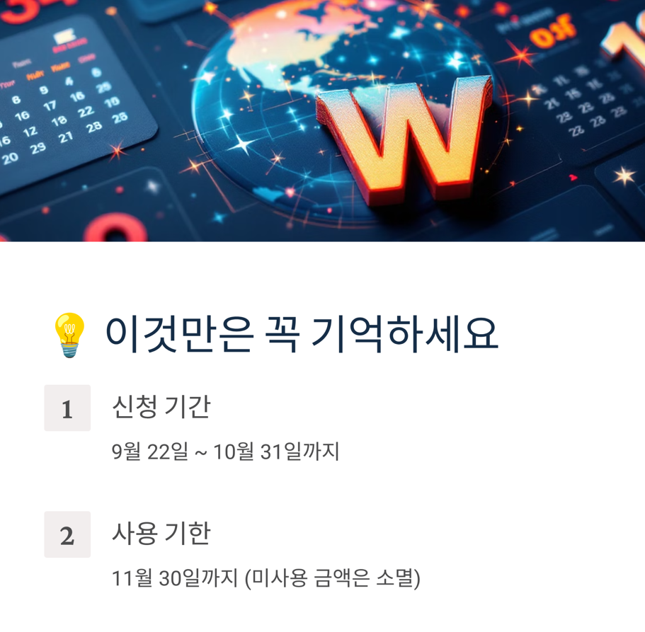 사용처 또한 제한이 있으니, 안내된 정보를 꼼꼼히 확인한 후 기간 내 신청하고 모두 사용해 혜택을 온전히 누려보시기 바랍니다.