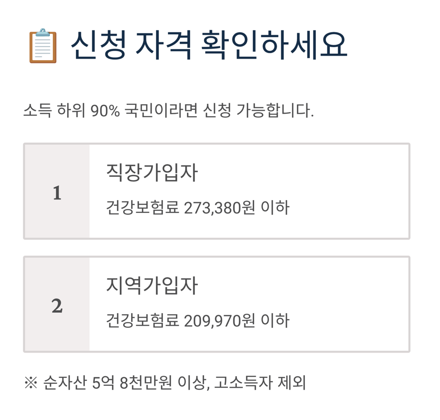 | 신청 대상자 | 소득 하위 90%, 자산 기준 확인 필수 |